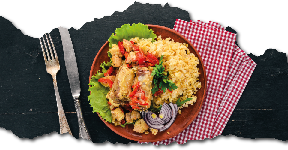 - Servir la semoule égrainée dans une assiette, déposer les légumes avec le bouillon au centre et ajouter la cuisse de poulet.