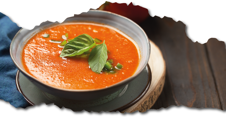 - Laisser reposer 1 heure au réfrigérateur. Servir bien frais et parsemé de feuilles de basilic.